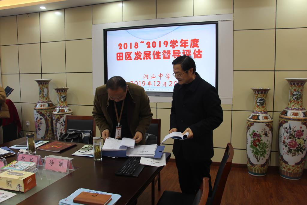 2019年12月20日上午,以杨光宇督学为组长的田区教体局督导评估专家考核小组一行9人莅临洞山中学,对我校进行2018—2019学年度发展性督导评估和校(园)长、书记2019年度绩效考核。洞山中学党委书记、校长徐永忠同志带领校领导班子成员全程陪同检查。