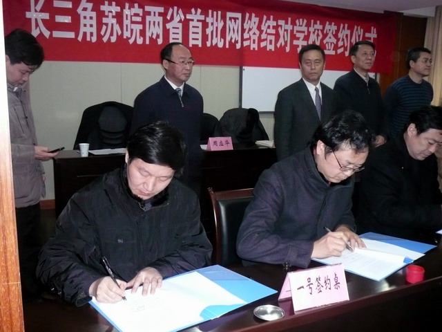 前,皖、苏、浙、沪三省一市达成协议,共同推动教育资源建设和应用的跨地区战略性协作,实现区域教育联动发展,形成三省一市学校的结对共建。我省为了使中小学教育尽快融入长三角教育联动共建体系,选派了35所学校为长三角网上结对学校,其中我校作为淮南市唯一被选派的中学,与扬州市田家炳实验中学成为网上结对学校。