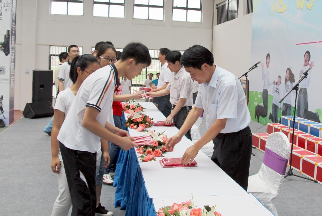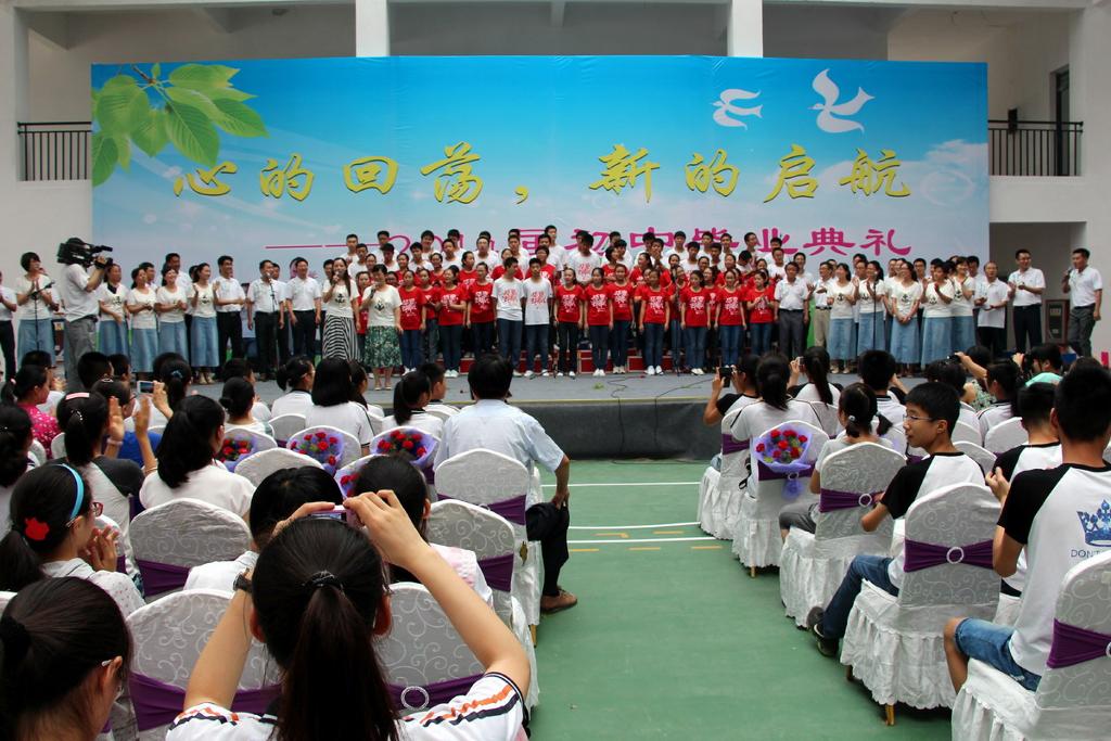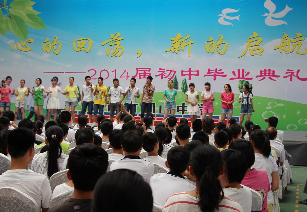 春夏轮回,又一个学年过去,我校 2011 级九百多名学生圆满完成学业。今天,我校在泉山湖分校隆重举办“心的回荡, 新的启航” 2014 届初中毕业典礼。 上午八时许,毕业典礼在热烈的气氛中开始,张跃华校长首先致辞,张校长在热情洋溢的致辞中,对三年来辛勤工作创造佳绩的老师们表示感谢,向我校2014届全体毕业生表示祝贺,并对即将离开母校的同学们提出了殷切希望,希望他们不忘母校,不忘恩师,继续努力学习,增长才干,奉献社会,为母校增光。随后,教师和学生代表发言,表达他们深深的师生情谊,浓浓的校园情怀。毕业典礼上,毕业生们从校领导手中接过鲜红的证书,把一束束鲜花捧献给他们敬爱的老师,全场响起热烈的掌握。在欢乐的气氛中,师生同台,携舞并歌,他们用最铿锵的语言、最动人的歌声、最优美的舞蹈再次抒发了至真心声至爱情愫。时光已逝,情谊尤在,岁月如歌,回荡心中。洞山中学2014届九百名学子,将把青春,把爱唱响新的航程。祝福他们!
