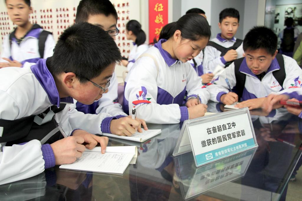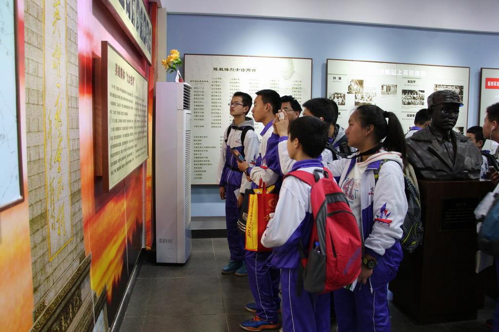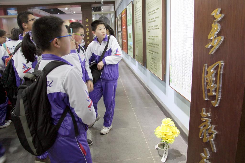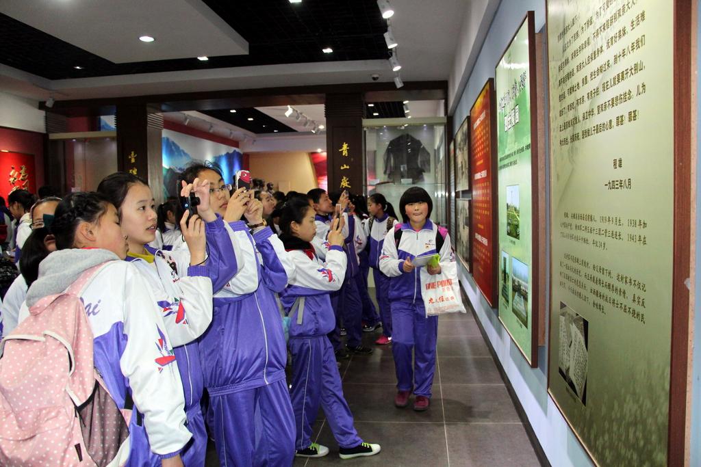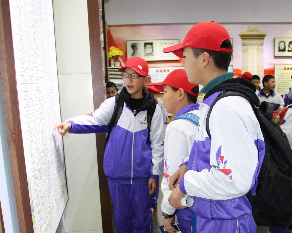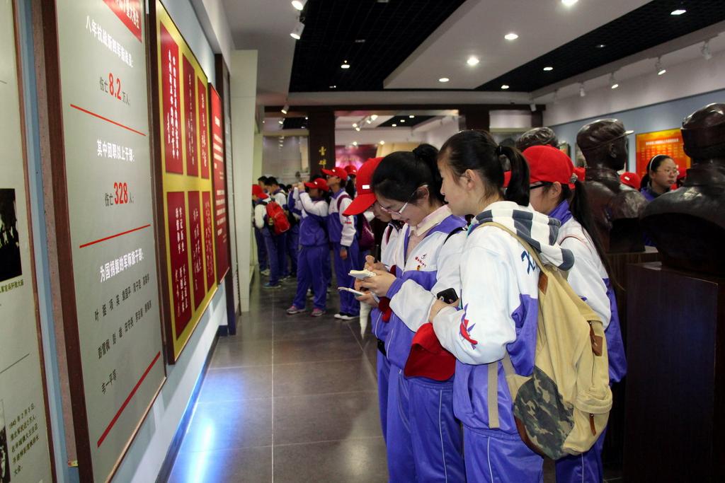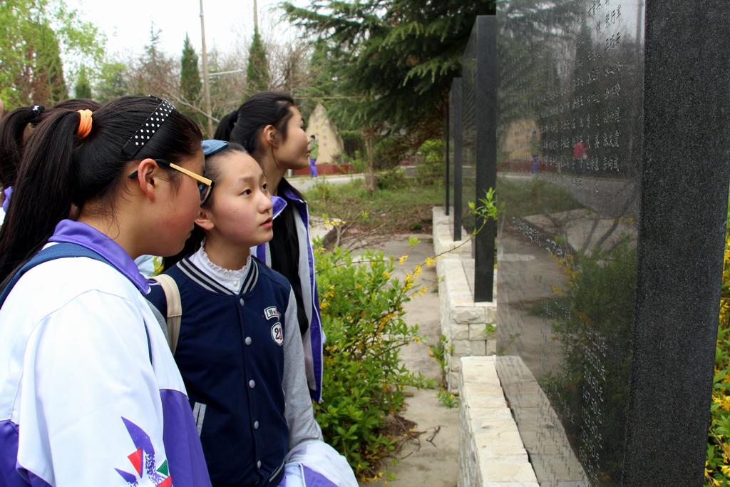同学们首先参观了“新四军纪念馆”。在馆中,同学们认真观看图片文字资料,了解新四军在淮南的奋战历程,汲取前辈的革命思想,感受他们为了国家英勇献身的精神。同学们边看边记边议论,对革命先烈的事迹感受深刻,对淮南地区革命史有了充分的了解。参观结束后,学校团委在纪念馆旁隆重举行了新团员入团仪式。在这特殊的场所宣誓入团,对新团员来说,是终身难忘的经历,相信他们在革命先辈的精神鼓舞下,会永铬誓言,努力学习,积极进取,将来成来建设国家的栋梁之才。最后,七年级全体学生参观了烈士陵园,再次感怀英烈的丰功伟绩,表达自己对英烈的怀念之情。
