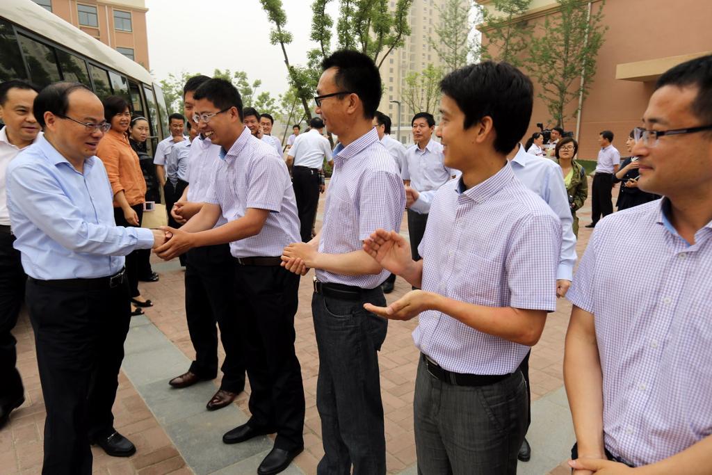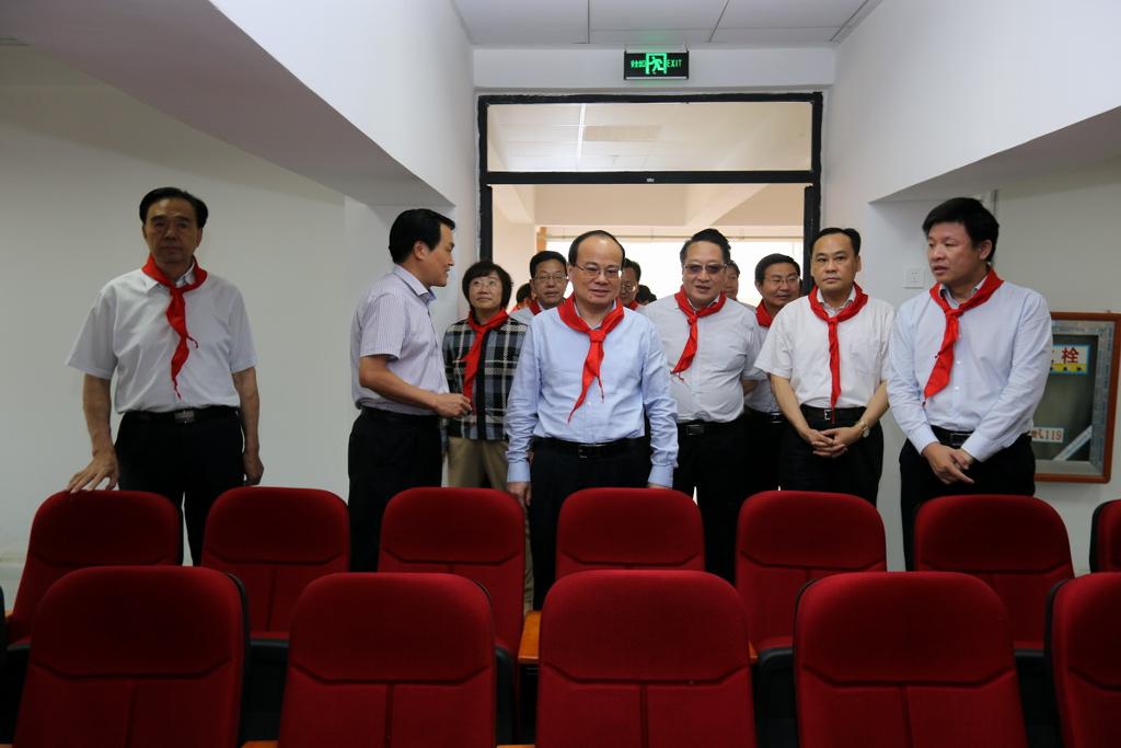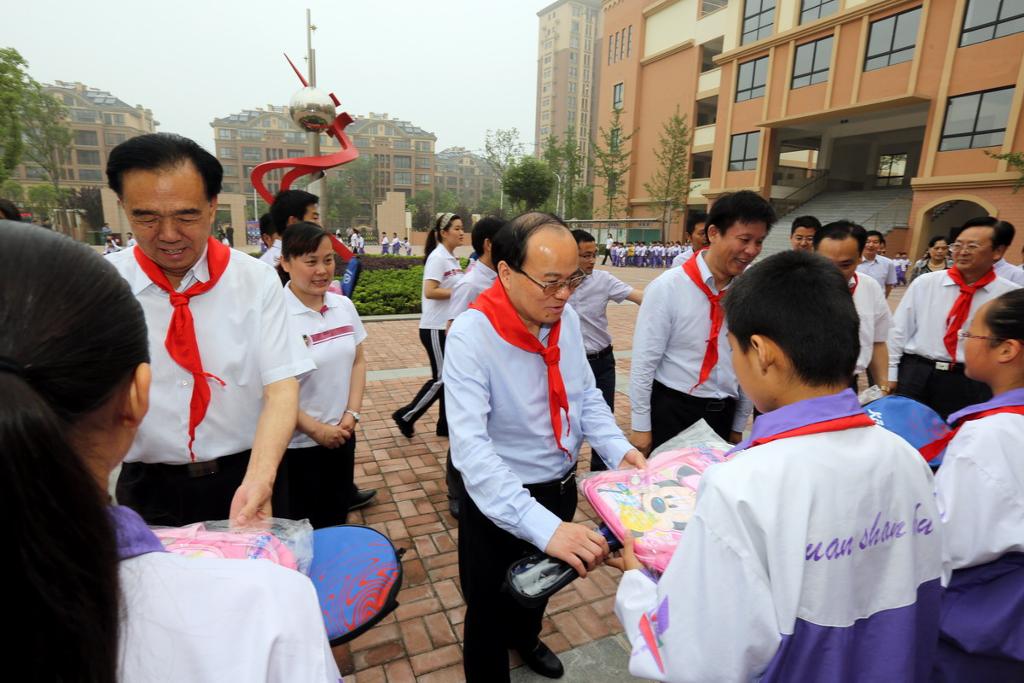5 28 “六一”儿童节前夕 , 市委书记沈强、市人大常委会主任王玉成、市委副书记王崧、市委常委、市委宣传部、统战部部长陈儒江等领导一行在区委书记刘琦、区长梁立昌、区教育局书记董军的陪同下到我校泉山湖校区慰问。