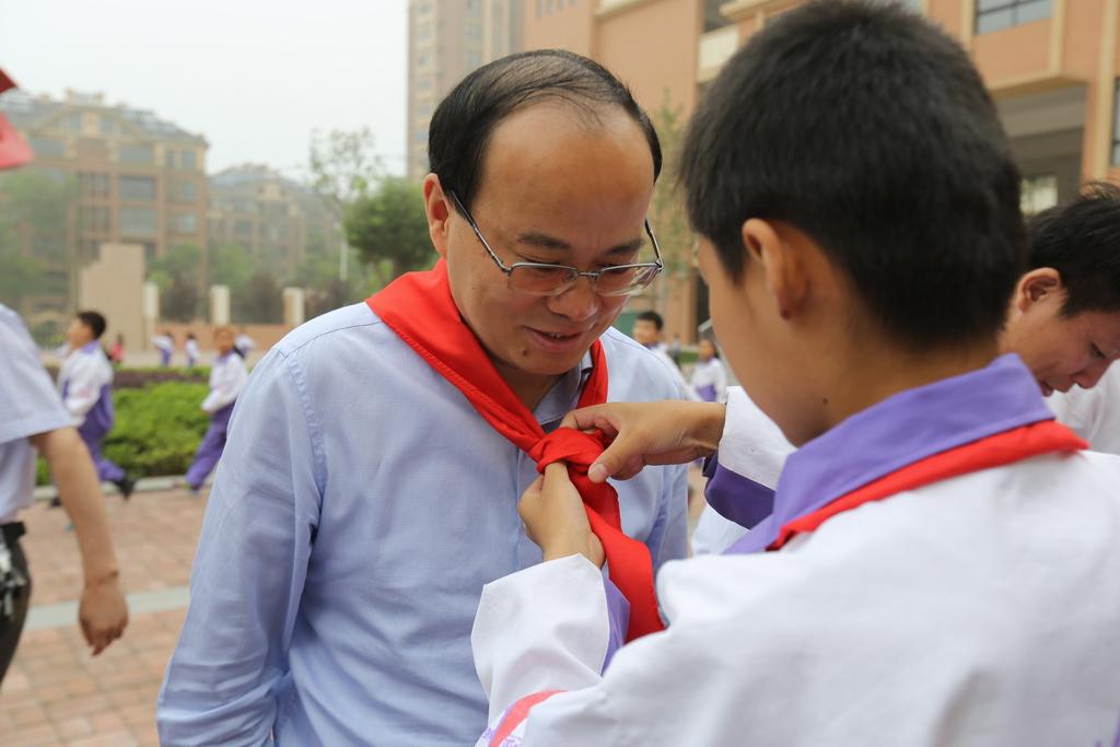 沈书记来到泉山湖校区,即走进师生中间,欣然戴上少先队员们献上的红领巾,同教师代表逐一握手表示问候,并为学生们送上节日礼物。随后,在校长徐永忠,副校长周平的陪同下,沈书记和各位领导参观了校园,观看了学生们的课间活动。沈书记指出,洞山中学泉山湖校区是一所新学校,要充分利用资源优势,办出学校特色,给孩子们提供一个优良的学习环境,让孩子们能够健康快乐地成长,成为国家栋梁之才。泉山湖校区领导表示一定按照沈书记的要求努力工作,办好学校,为淮南的教育作出贡献。