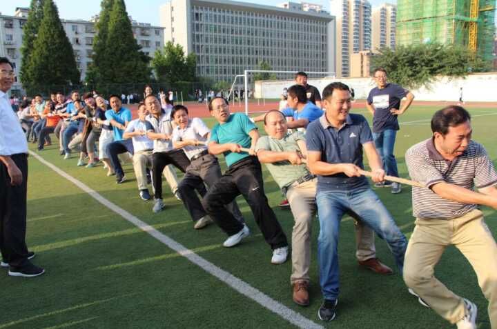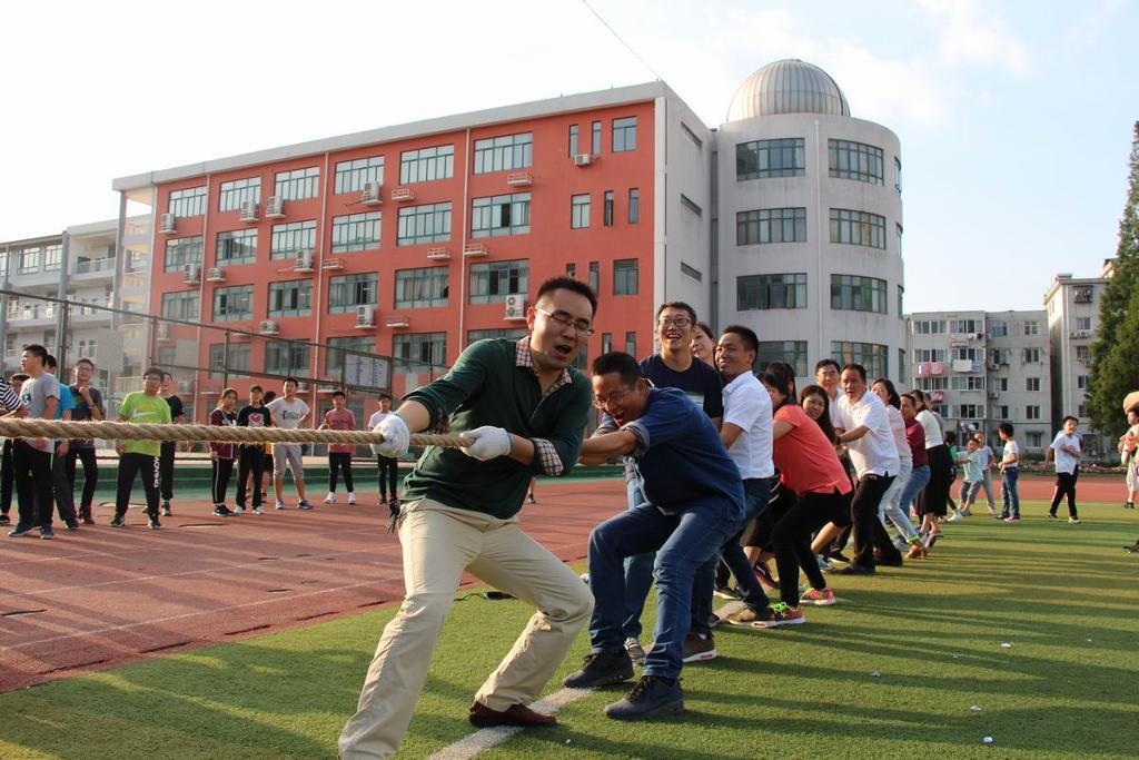 在教师节来临之际, 我校工会 组织教师于 九月七日、八日 开展了庆祝”教师节“活动。工会负责人王伟老师认真筹划,精心组织,各年级工会小组长协力配合,老师们积极响应,踊跃参加,活动开展得丰富多彩。 教师跳绳、投飞镖活动和拔河比赛分别在校体育馆和校运动场举行。拔河比赛尤其紧张热烈。 各年级组组成最强阵容参加了比赛。张跃华校长、徐永中书记和李亮副书记皆来到比赛现场,与教师们同赛同乐。比赛中双方互不相让,比力气,比精神,比团结,体现了洞山中学团结协作,拼搏奋进的精神。活动增进了教师之间的友谊,活跃了教师们的业余生活,展现了学校新学期的新气象。