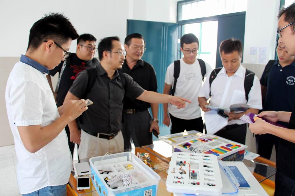 9月22日上午,北京师范大学信息科学与技术 学院专家组一行在区教育局书记、局长朱玉东,副书记、纪委书记、副局长孙静、局办公室主任李力的带领下来我校调研信息技术的运用,进而为规划发展田区学校信息化提出建议。 领导与专家一行观看了我校的信息化建设专题片,对我校信息化校园建设的成绩给予了较高的评价,然后参观了我校的“创客实验室”, 详细询问了 “比特创客平台”的建设情况。专家和领导们还参观了我校“智慧教室”,了解了“智慧教室”的硬件建设及软件运用,随即与我校领导及有关教师进行了讨论,畅谈信息化在校园的未来发展趋势。最后 专家组一行去我校东校区继续调研。
