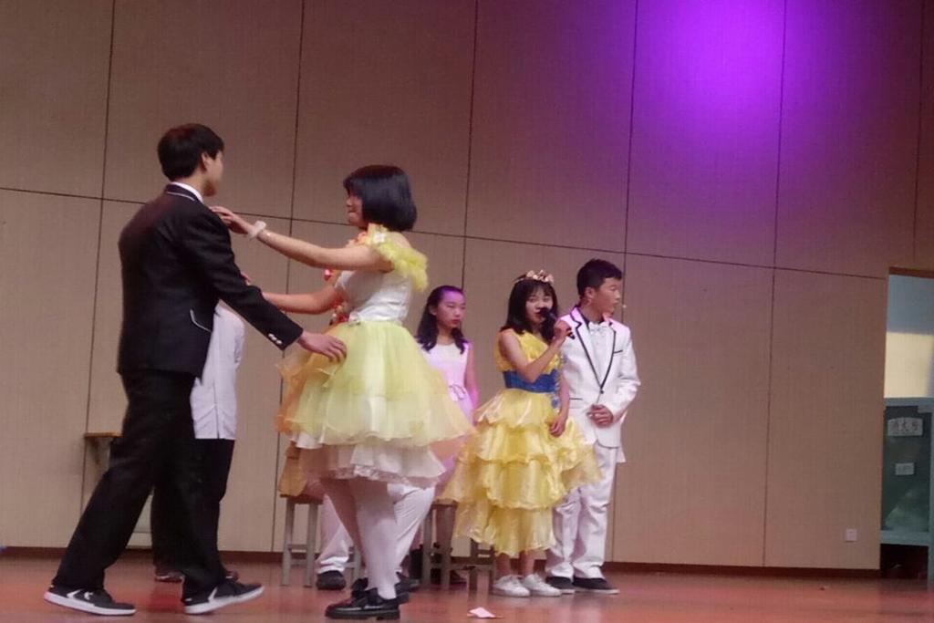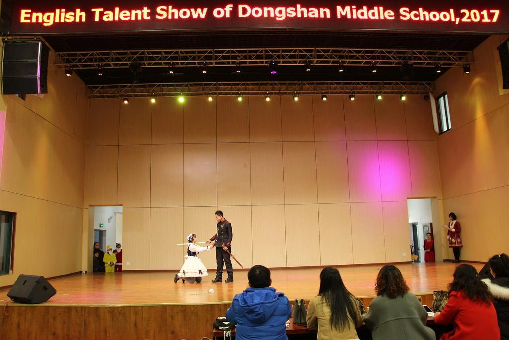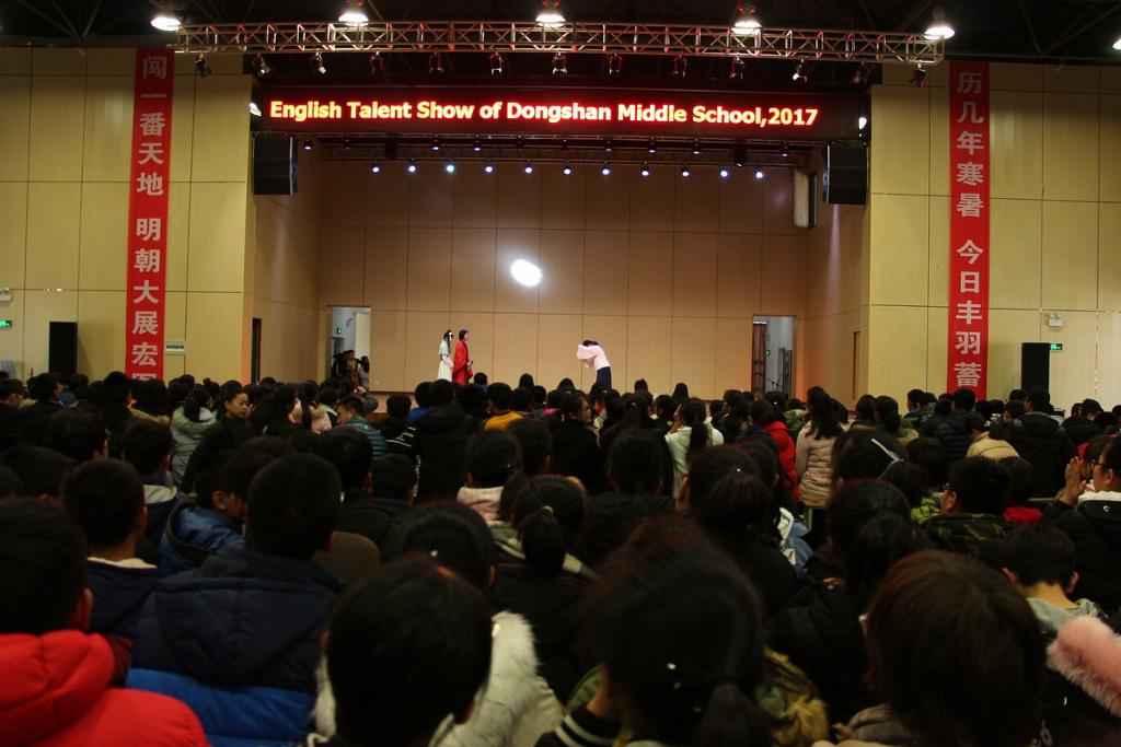 为了塑造学生阳光性格,丰富学生业余生活, 12 月 23 日,我校举行了第四届学生英语才艺表演活动。本次活动由八年级学生参加。同学们在英语老师的指导下,精心编排,采用英语演讲、英语歌曲、英语话剧等丰富多彩的表演形式展示了自己的才艺,大家在表演中说英语、学英语,感受英语的魅力,体验学习英语的快乐。我校每年举办的 学生英语才艺表演活动,是活动式教育 寓教于乐 的良好实践,活动激发了学生学习兴趣,对打造多元的校园文化起到了积极的推动作用。 (刘宝玉老师供稿)