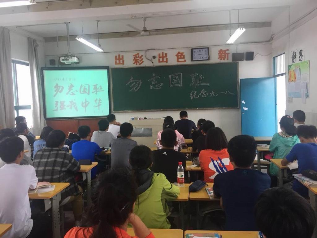 今天是“九·一八”事变爆发 87 周年纪念日。这一天是国耻日,也是中华民族觉醒日。为弘扬“勿忘国耻 奋发图强”的爱国主义精神,我校开展了纪念“九·一八”爱国主义宣传教育活动。 学校利用广播站、电子屏等形式广泛宣传,在校园内营造良好的爱国主义风气。校园广播播报了方荣主任题为《勿忘国耻 — 纪念 9 · 18 事变 87 周年》的讲话,班主任老师利用早读课对同学们再次进行爱国主义教育,希望同学们珍惜今天来之不易的生活,不忘历史,振兴中华。 9月 18 日上午 9: 18-9:21 防空警报拉响,全校学生由班主任组织学生在教室内进行集体默哀,悼念在日本侵华战争中死难的同胞,警示学生勿忘国耻,缅怀革命英烈,进一步增强国防意识。同时向学生普及防空警报的相关知识。 通过本次爱国主义教育活动,同学们了解了祖国那段苦难屈辱的历史,了解了日本帝国主义悍然侵略中华的史实,以及 9 · 18 事变引发全国人民的强烈愤慨和反抗的历史经历,增强爱国意识,激发了爱国热情。活动教育了全体同学牢记历史,勿忘国耻,努力学习科学文化知识,掌握先进的科学技术,把我国建设得更加美丽富强,让中国屹立于世界的东方,让那段屈辱的历史不再重演!(汤伟老师供稿)
