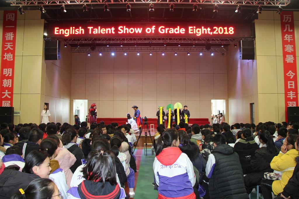 为了打造多元校园文化,丰富学生业余生活,让全体学生在参与中体验学习英语的快乐,感受英语的激情,享受英语文化的魅力, 12 月 28 日, 我校 八年级 在校体育馆举办第五届学生英语才艺表演比赛。本次活动中有英文歌演唱、童话剧表演、英语演讲等。丰富多彩的节目有改编、也有原创,皆由师生共同编制。纯下的口语表、精巧的情节构思,表演者 趣味横生与惟妙惟俏 神情动作 ,使师生们沉浸在快乐中,三个小时的活动精彩不断。最后经过评比,八(2)班、八(7)班、八(13)班获得一等奖;八(14)班、八(5)班、八(15)班、八(6)班、八(3)班获得二等奖,其它班获得三等奖。(中教处)