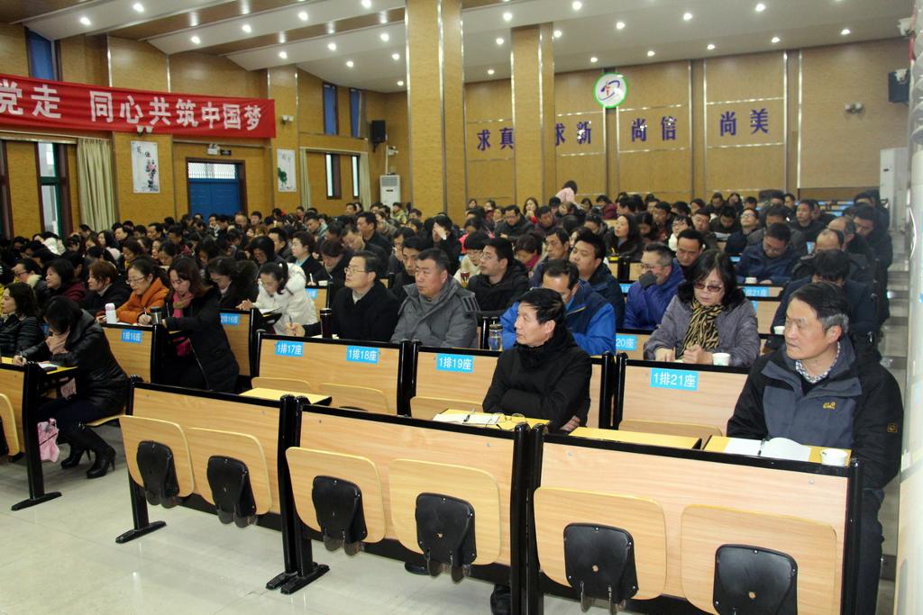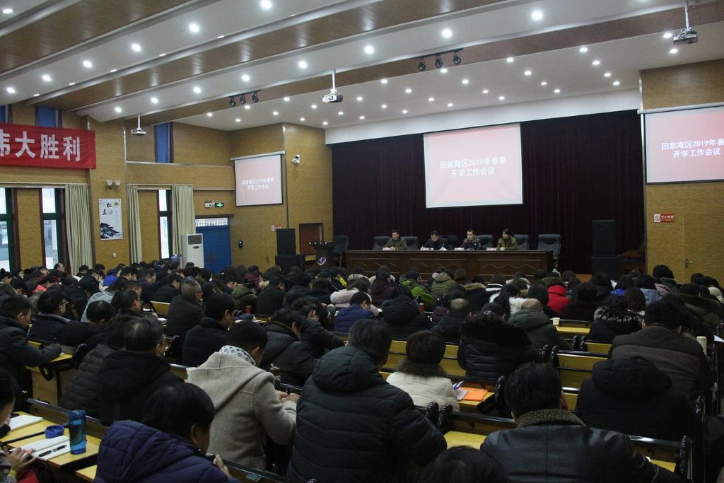 2月18日下午,田家庵区2019年春季开学工作会议在我校召开。会议由区教育局局长朱玉东主持,区委常委、副区长王琦、区教育局副局长梁平、 教育局机关党委书记孙静以及全区各中小学、幼儿园领导参加了会议。会上,朱玉东局长首先强调本次会议的意义和重要性,对与会人员提出要求。随后朱局长 总结田区2018年教育工作情况,布置安排新的一年里教育工作。最后,王琦副区长级给与会人员上党课。王区长在党课中着重强调了党员干部的信仰问题,要求全区各学校领导干部要坚定信仰,坚守党性,不忘初心,忠诚事业,把学校的教育工作抓好,为全区人民服务,为社会服务。