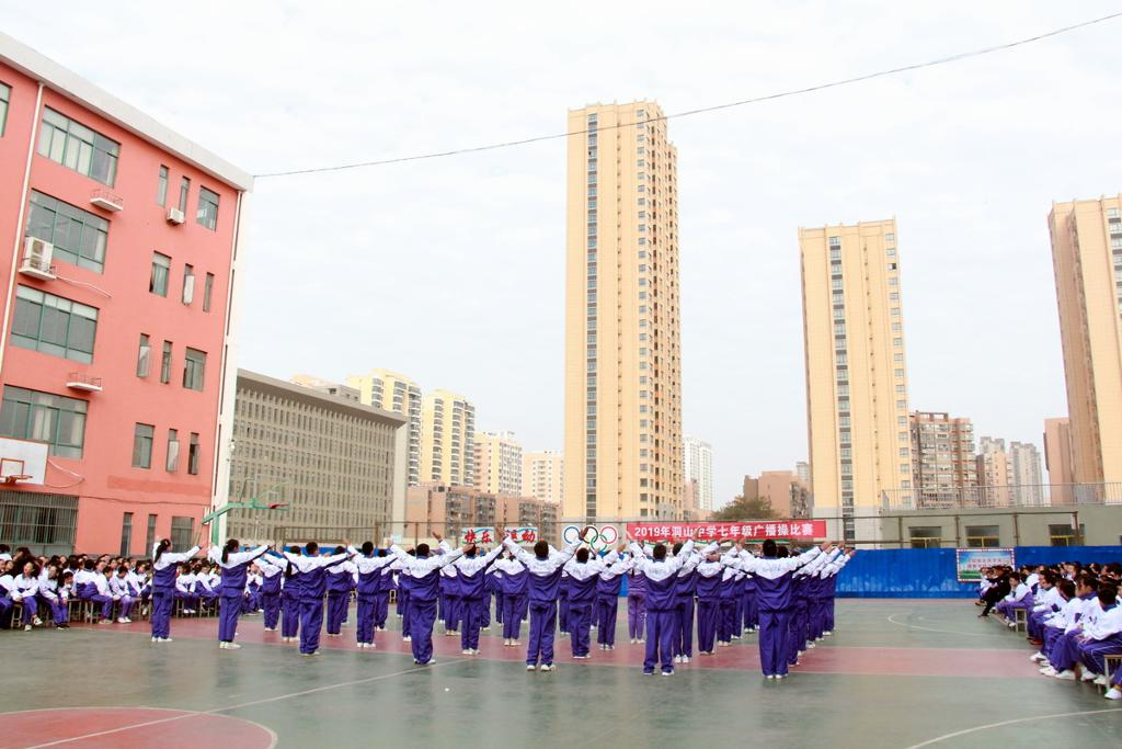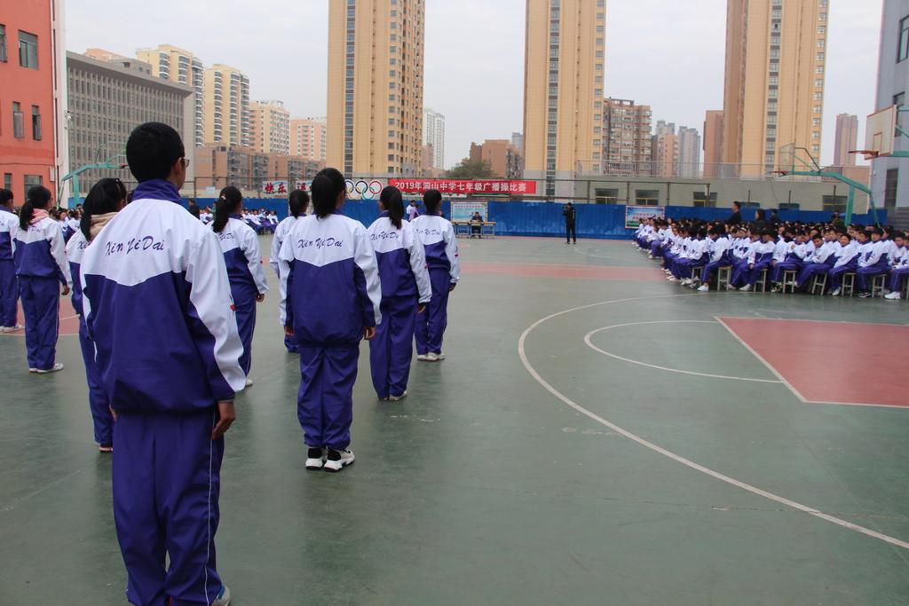 为增强学生体质,培养争先创优的团队精神,认真贯彻国家体育总局提出的“每天锻炼一小时,幸福生活一辈子”的体育健康理念 ,11月21日下午,我校在校篮球场举行七年级广播操比赛。在比赛中,各班同学团结协作,表现了顽强的意志、持久的定力,展示了青春活力和团队精神。这次比赛充分体现了学校和谐进取的主题,大大提高了我校广播操的整体动作质量,也必将促进我校体育活动的蓬勃发展。经过评比, 七(3)班、七(14)班、七(7)班获得 一等奖; 七(2)班、七(13)班、七(11)班、 七(8)班、 七(12)班 获得 二等奖; 七(9)班、七(4)班、七(10)班、七(6)班、 七(5)班七(1)班获得 三等奖。