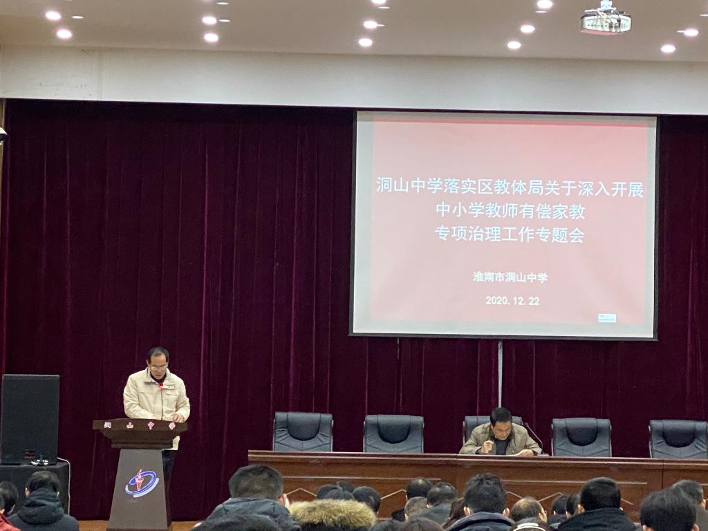 为了进一步加强和改进新时代教师队伍建设,全面提升我校教师思想政治素质和职业道德水平,坚决抵制有偿家教等行为发生,2020年12月22日下午,洞山中学召开了师德师风建设暨深入开展有偿家教专项治理工作会议。