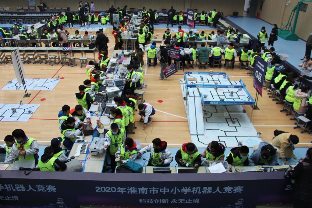 由市科技局、教体局主办的淮南市第二届机器人竞赛,12月27日在山南淮师附小开赛。来自全市162支队伍,共324人参加了比赛。我校领导高度重视,由办公室负责人马才学牵头,张国、胡瑞两位老师具体负责,组建了29支队伍,共58名选手参赛。校党委书记、校长徐永忠同志亲临比赛现场为师生鼓劲。