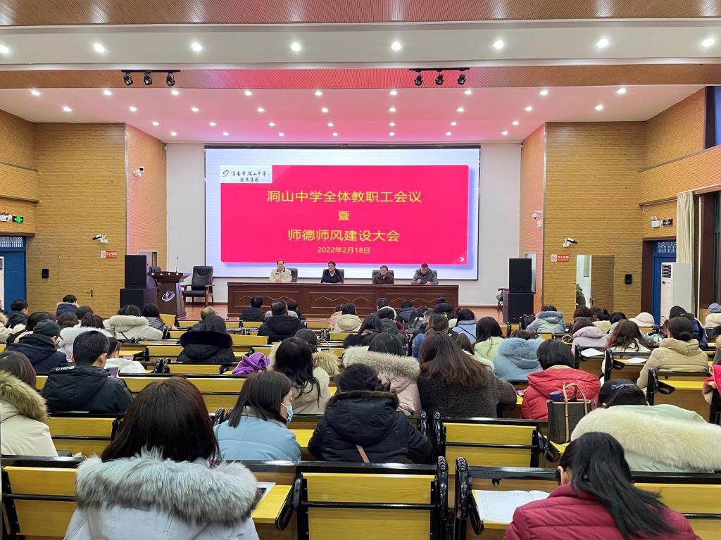 2月18日下午,我校举行全体教职工大会。王洪军校长在会上就防疫工作、安全教育、课后服务、班主任管理、健康教育、考核考勤、师德师风建设、常规教学管理、教育科研、学期重点工作等10个方面的工作,提出了明确要求。王校长还表示,目前洞山中学已经具备了很好的发展基础,学校发展依靠全体教师的共同努力,今后还要大力营造学校和谐发展的新局面,打造学校特色发展的新品牌,激发学校优质发展的新动能。最后,王校长对全体教师提出了殷切希望,希望广大教师,刻苦学习、勤奋专研,争做新时代“四有”教师。