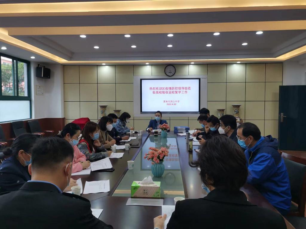4月30日下午,区教体局党委副书记、副局长孙静率领由教体局、区卫生健康、区市场监管等部门组成的9名核查组同志莅临我校复课准备工作。我校王洪军校长等陪同检查。