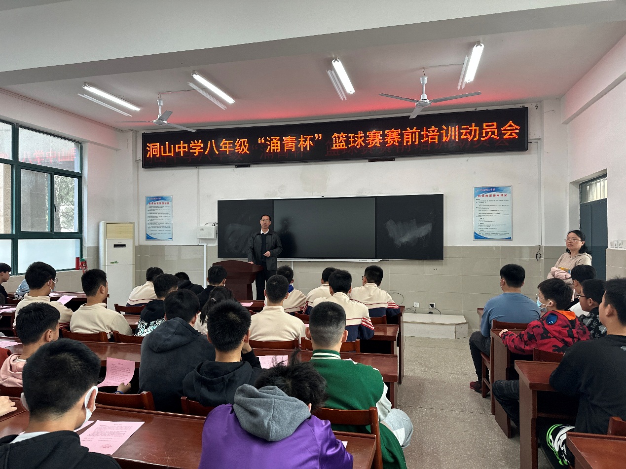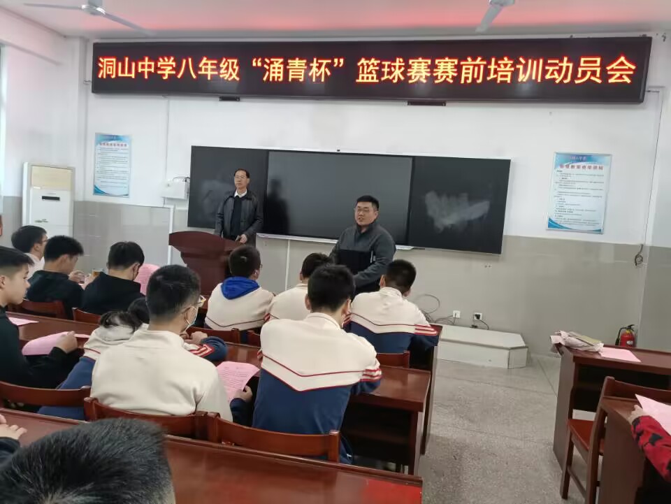 为了迎接即将到来的八年级首届“涌青杯”篮球赛,为了更加顺利的完成此次比赛。我校于2023年3月9日上午大课间在101教室召开了全体运动员的赛前动员暨培训会。会议由教导处刘宝玉主任主持。