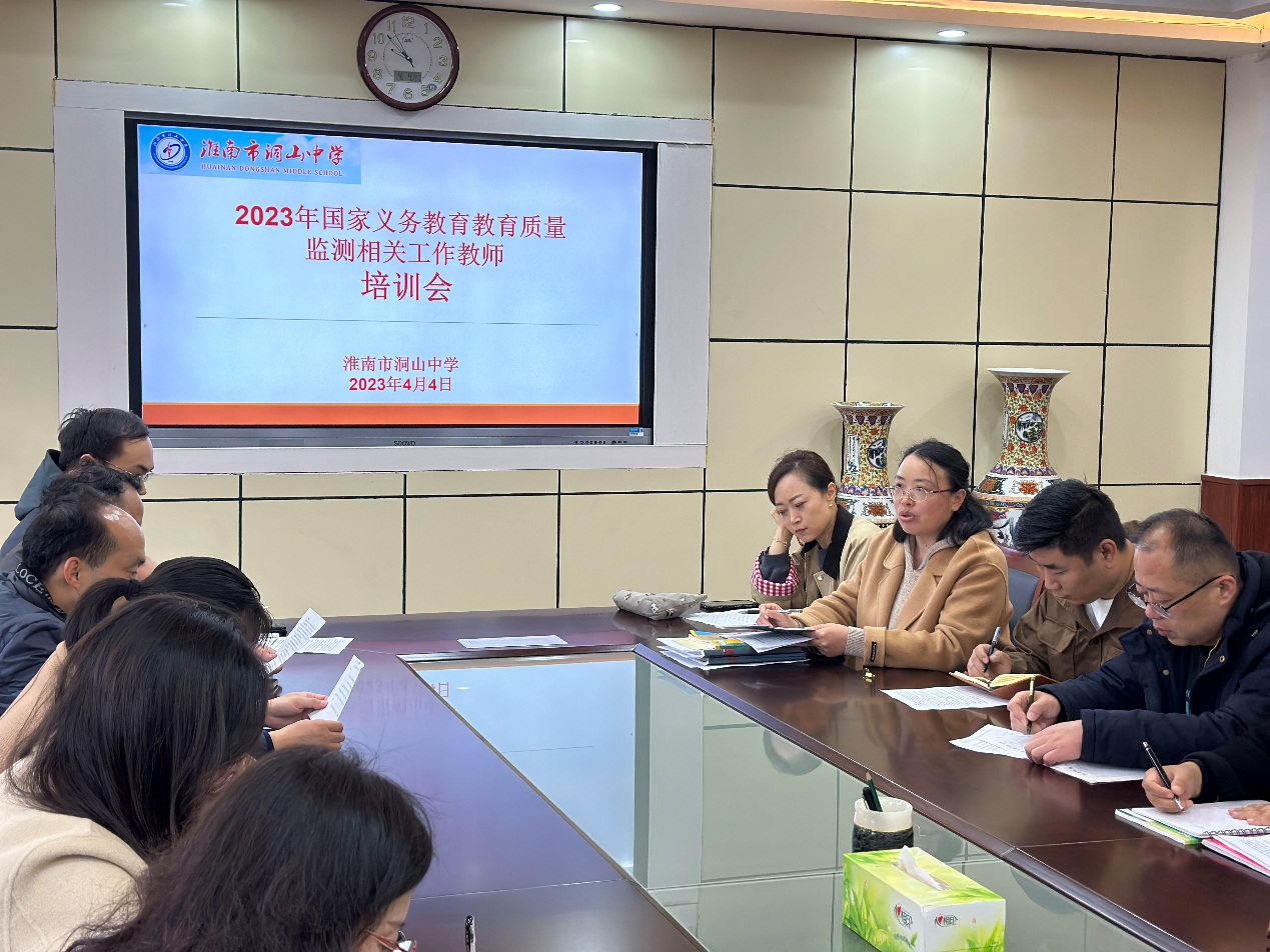 为了做好义务教育教育质量监测的相关工作,认真仔细的完成前期准备工作,我校中学教导处于2023年4月4日在205会议室召开相关工作教师培训会。会议由教导处刘宝玉主任主持,八年级道德与法治、物理、地理、生物、劳动教师和九年级化学教师参加此次会议。