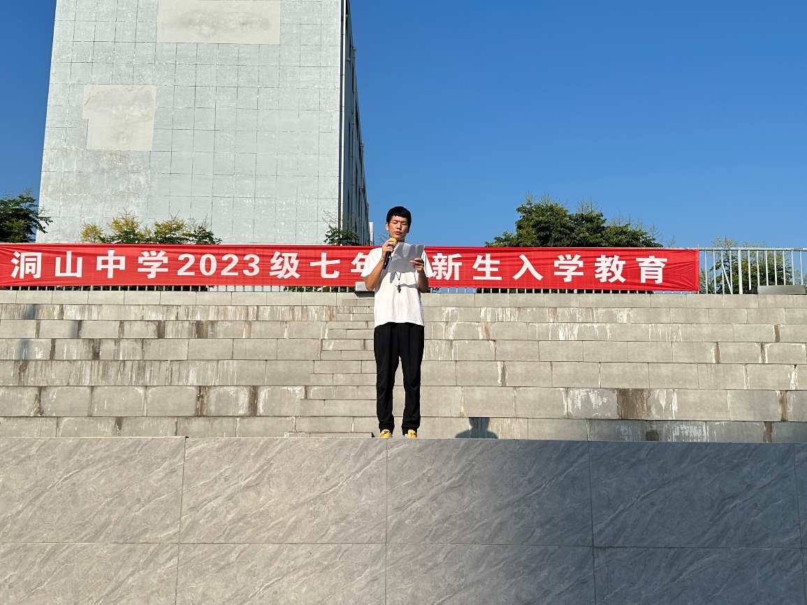 来自七11班的谢奕同学代表全体新生发言,谢奕同学说新的学期,开启新的想象,新的实践,承载新的梦想。步入初中的三年是人生中重要的三年,是挑战的三年,也是奋斗的三年,在初中的学习生涯中作为学生要积极转变思想,找准方法,制定计划,主动去适应新的学习生活。“宝剑锋从磨砺出。梅花香自苦寒来。”希望全体学生从洞山中学出发,共筑梦想努力去成为一个合格的中学生!