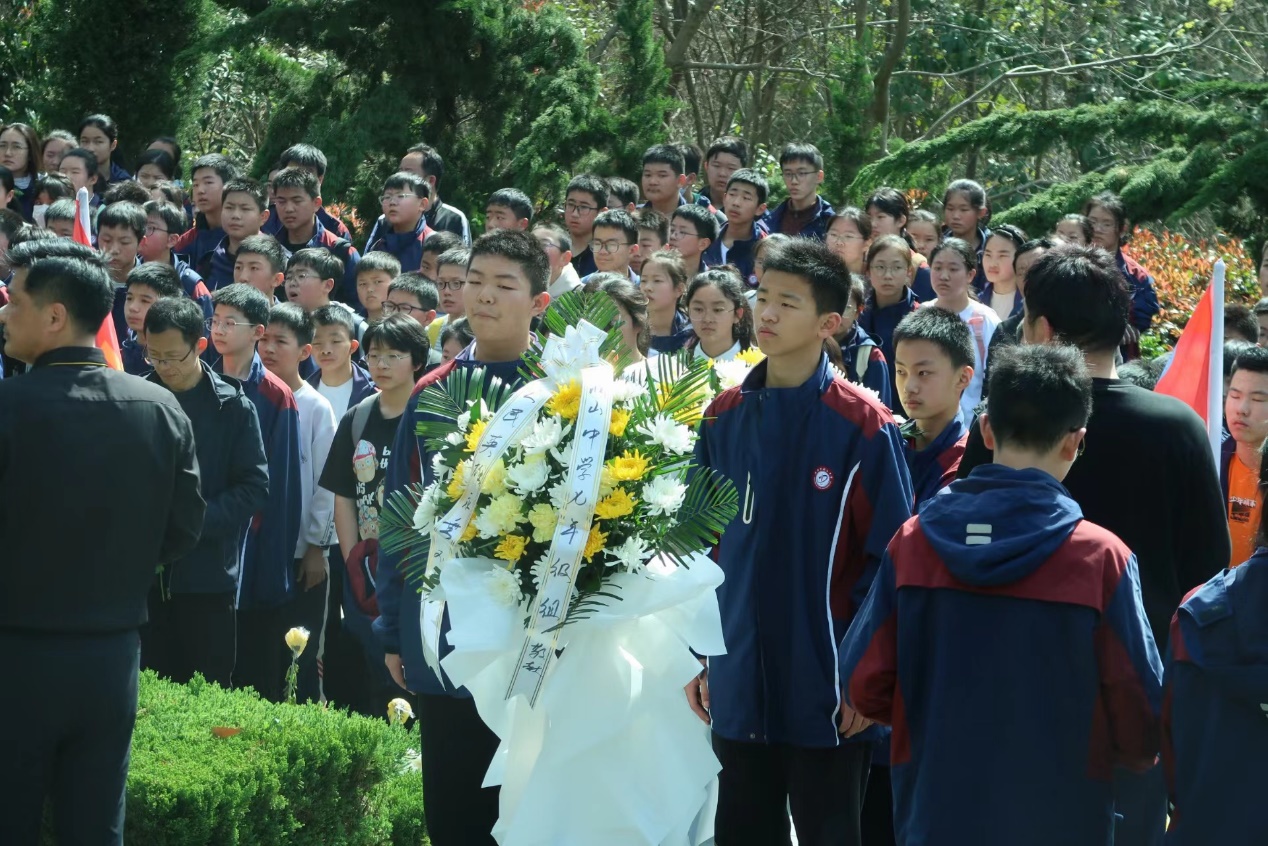随后举行了向烈士墓敬献鲜花仪式。师生们列队伫立在烈士墓前,将手中的鲜花静静地放在烈士的墓碑上。每一束鲜花都代表着我校师生对先烈的怀念和敬意,也表达了对革命精神的传承和发扬。