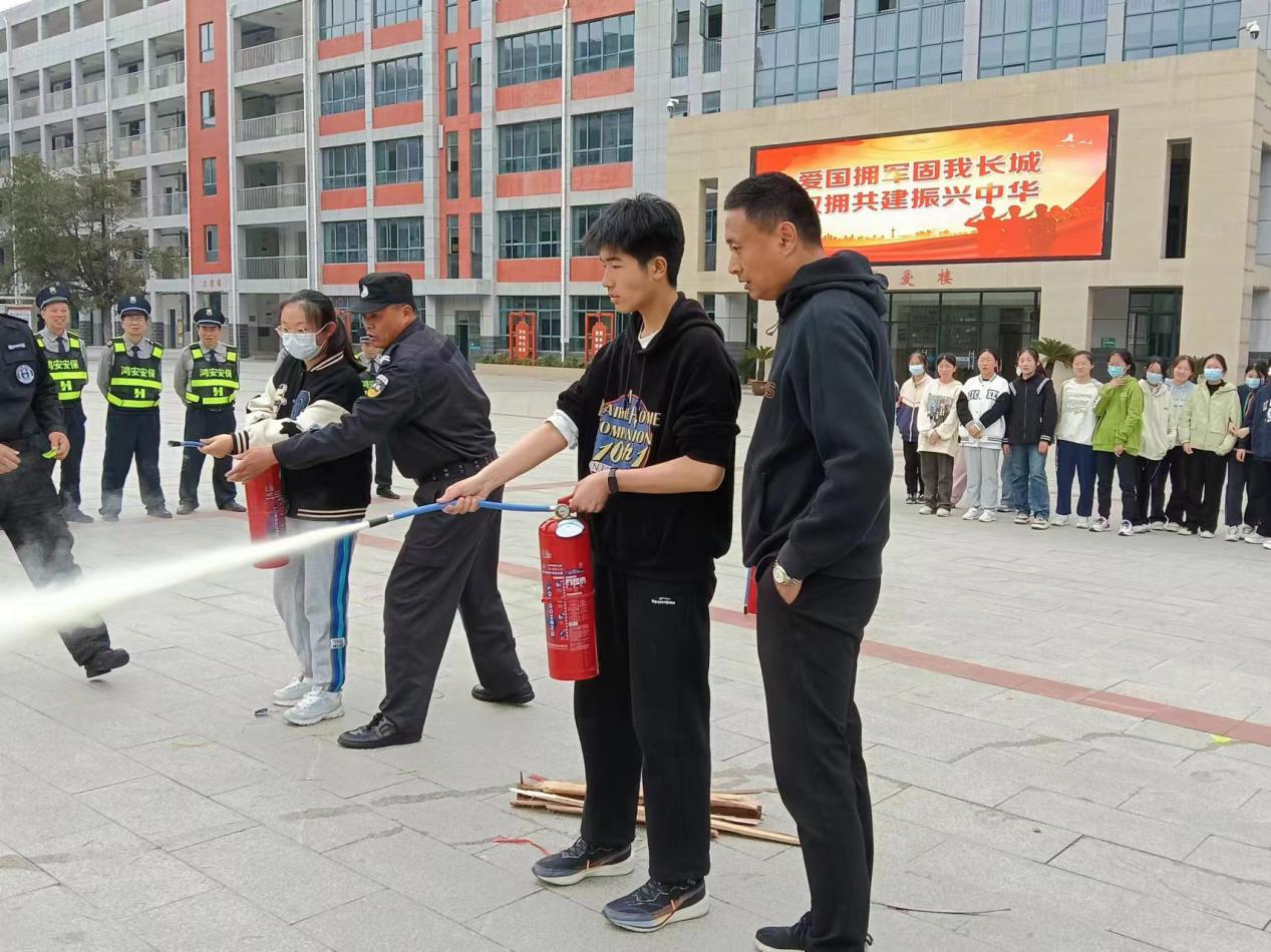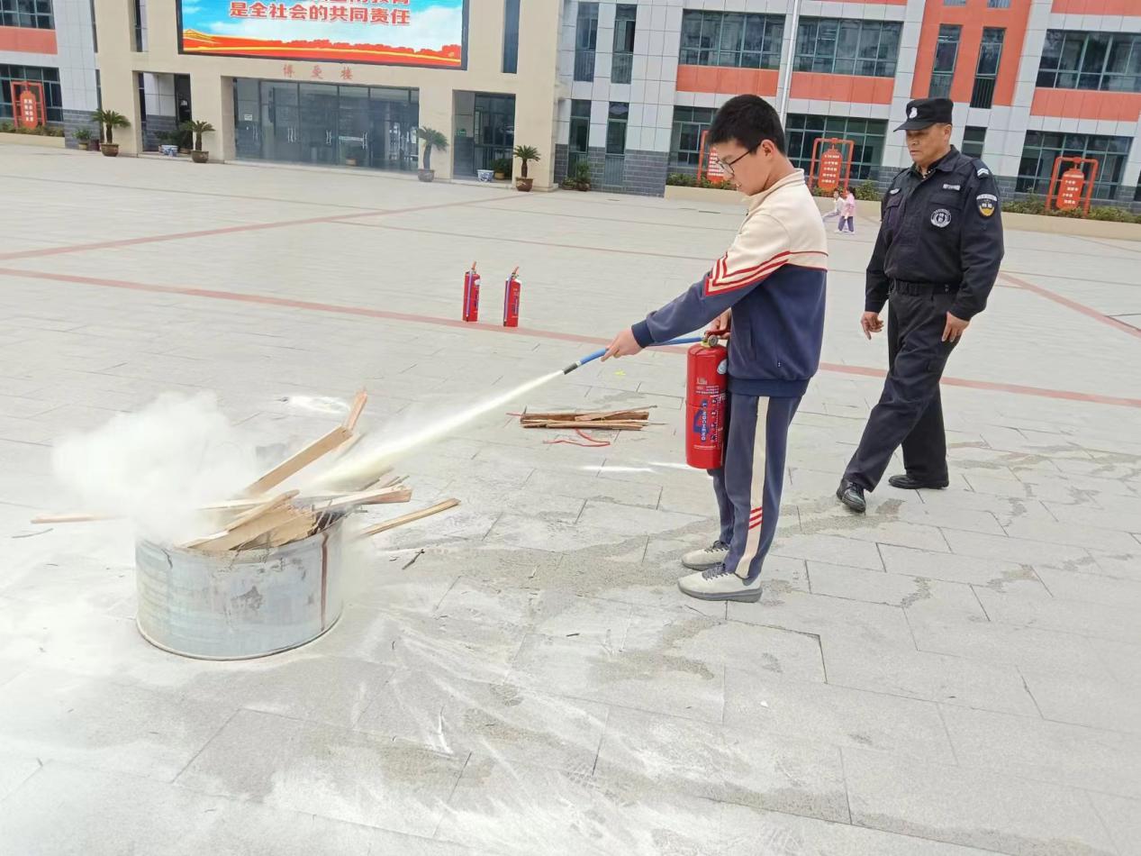 (学生操作灭火器模拟扑灭小型火灾)