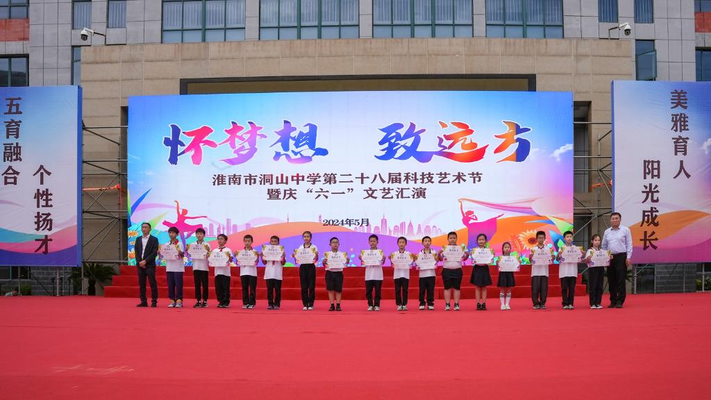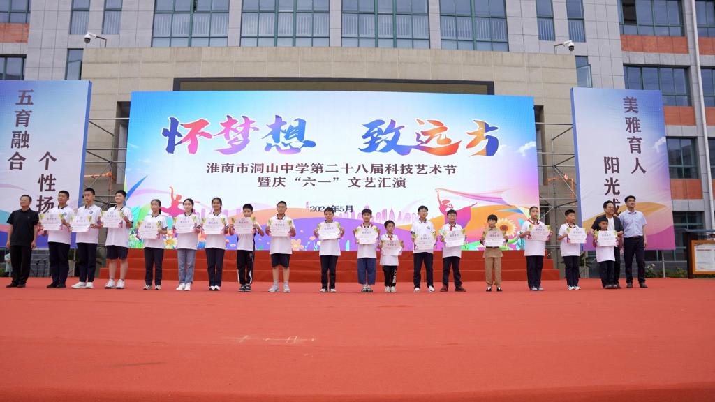 情燃五月,恰同学少年;扬帆逐梦,正灼灼芳华。为扬科技之风,融艺术之彩,推动学校科技教育和艺术健康发展,营造积极向上、健康文明的校园文化氛围,绽放青春活力,5月29日下午,洞山中学举办了以“怀梦想致远方”为主题的第28届校园科技文化艺术节系列活动之文艺汇演。学校邀请了淮南市教育体育局党委书记、局长杨慎红、田家庵区委常委、政府副区长王庆祝以及市区教育体育局相关部门负责人、兄弟学校校长、家长代表和师生们欢聚一堂,共同观看了演出。