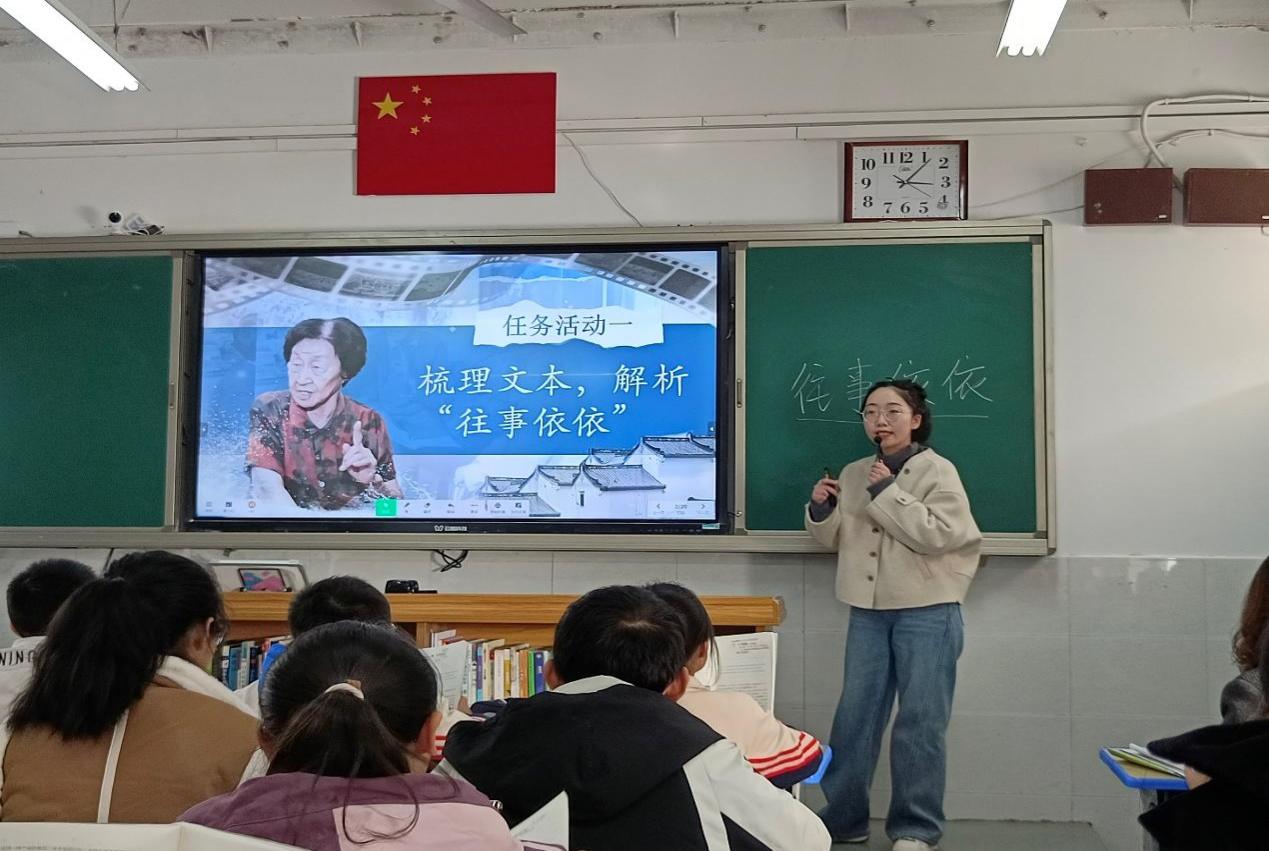 徐泽琳老师这节课,围绕单元教学目标,把握回忆性散文的特点,紧抓文本语言进行教学设计。课堂上,徐老师抓关键词,反复赏析语句的妙处,引导学生梳理往事,体悟于漪老师的“依依”之情。