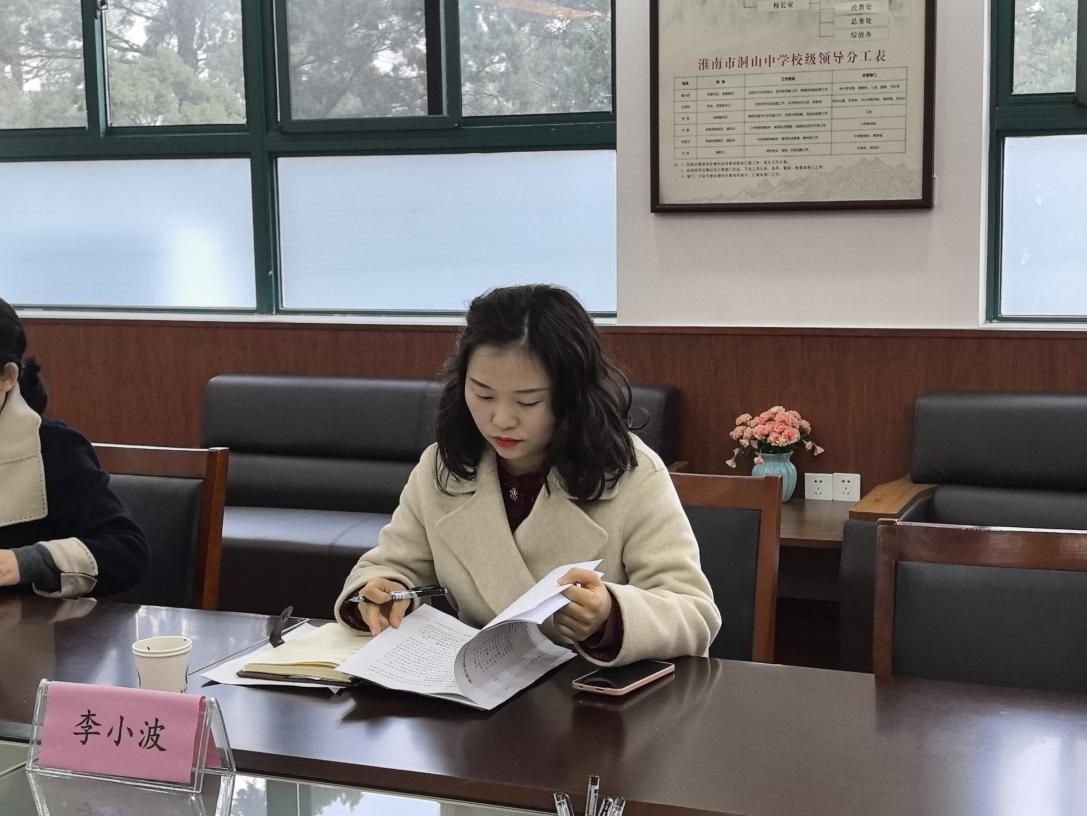 会议由校党委书记童大信主持,田家庵区教体局副局长李小波、宣教科科长李雪菲莅临指导,洞山中学全体党委班子成员参加。